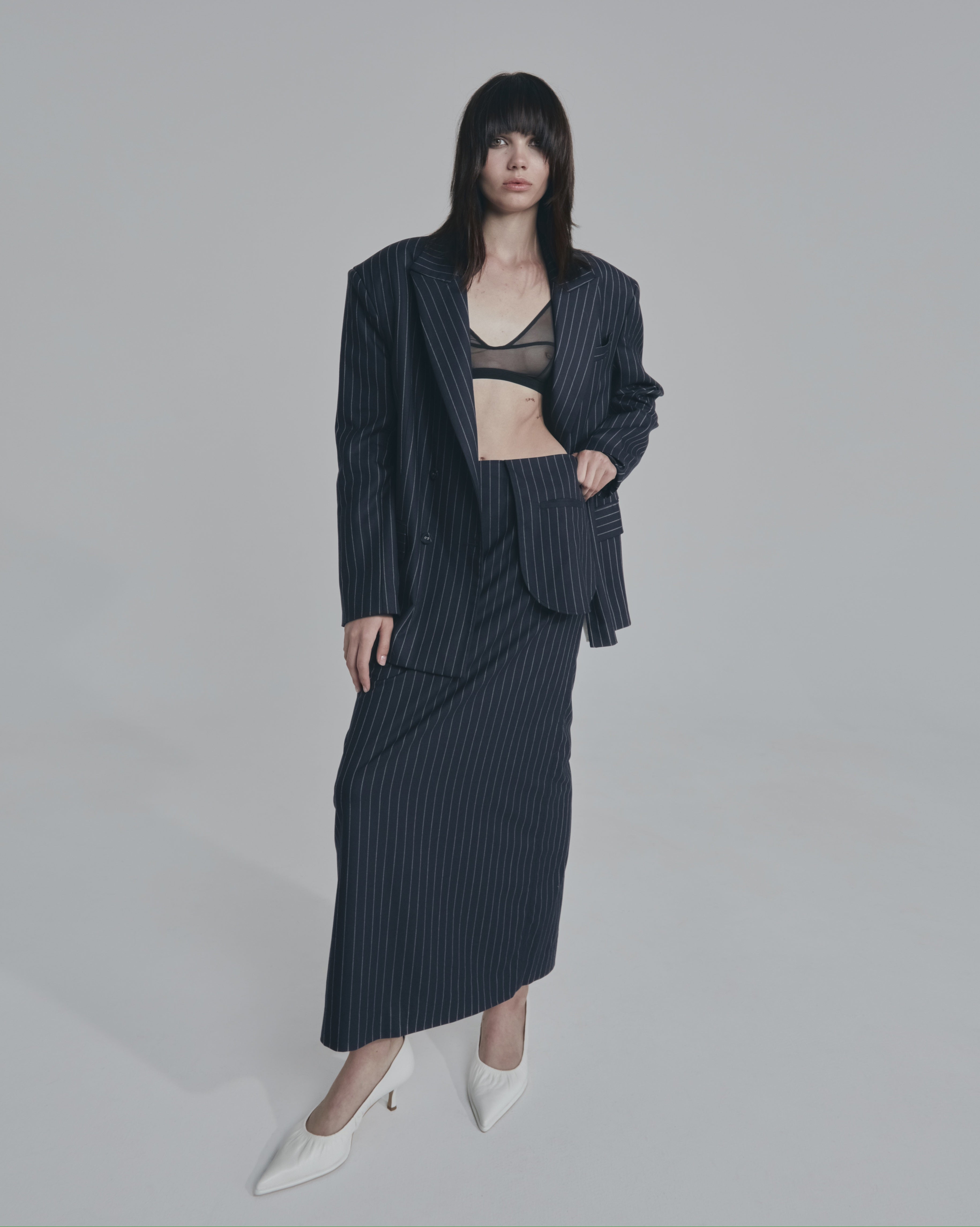 Jacket straight cut from wool. Classic collar, clasp for 3 buttons. Two side pockets with flap and one chest. Product on a cotton substrate.