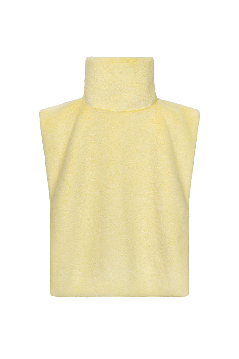 A soft and warm accessory. A collarless cape with a stand-up collar. Soft lining. The garment can be worn under jackets, or over coats, trench coats, and dresses. A bright element to add flair to any outfit.