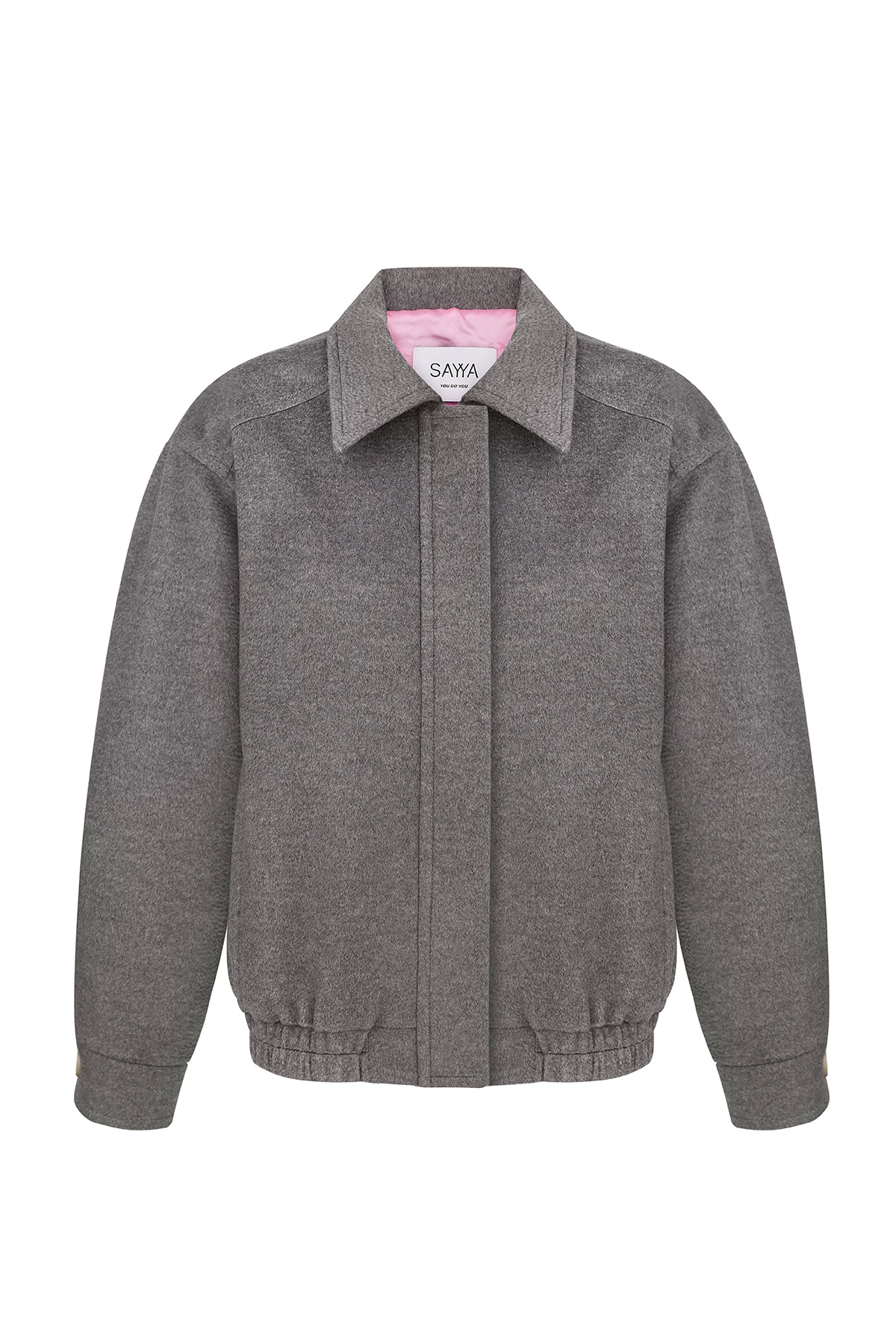Oversized straight-cut bomber jacket with a dropped shoulder line. Turn-down collar, zip fastening. Sleeves with cuffs with buttons. The product is lined.