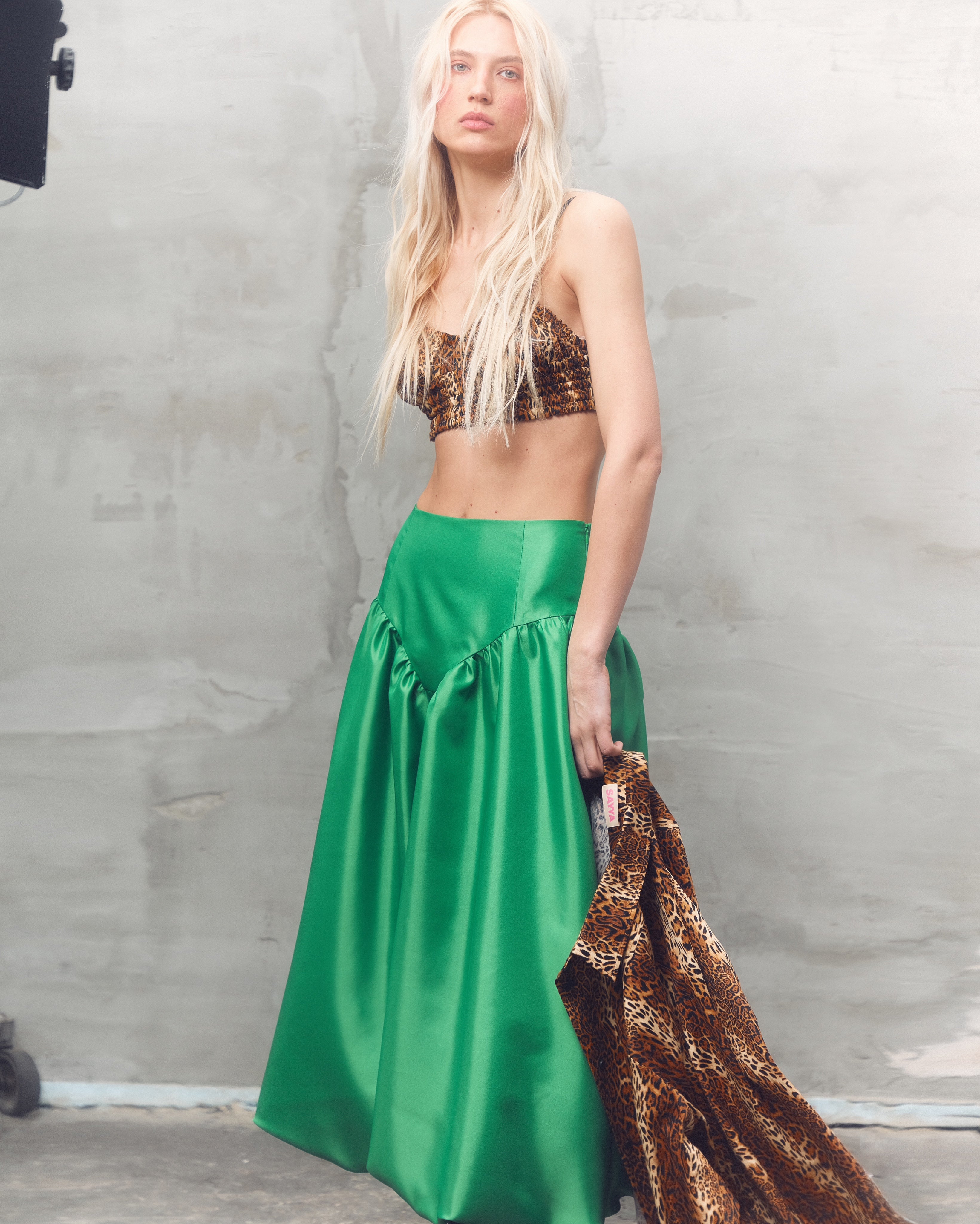 Midi length ballon skirt. The skirt is ideal with a waistcoat in the same colour, as well as with basic items: jumpers, hoodies, shirts, longsleeves, T-shirts.