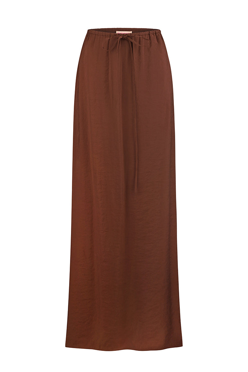 Maxi skirt. Airy and flowing fabric. Fit at the waist. Fixation with elastic band and ties. This allows the product to be flexible in size and waist level. There is a slit on the back. Perfectly combined with a any looks