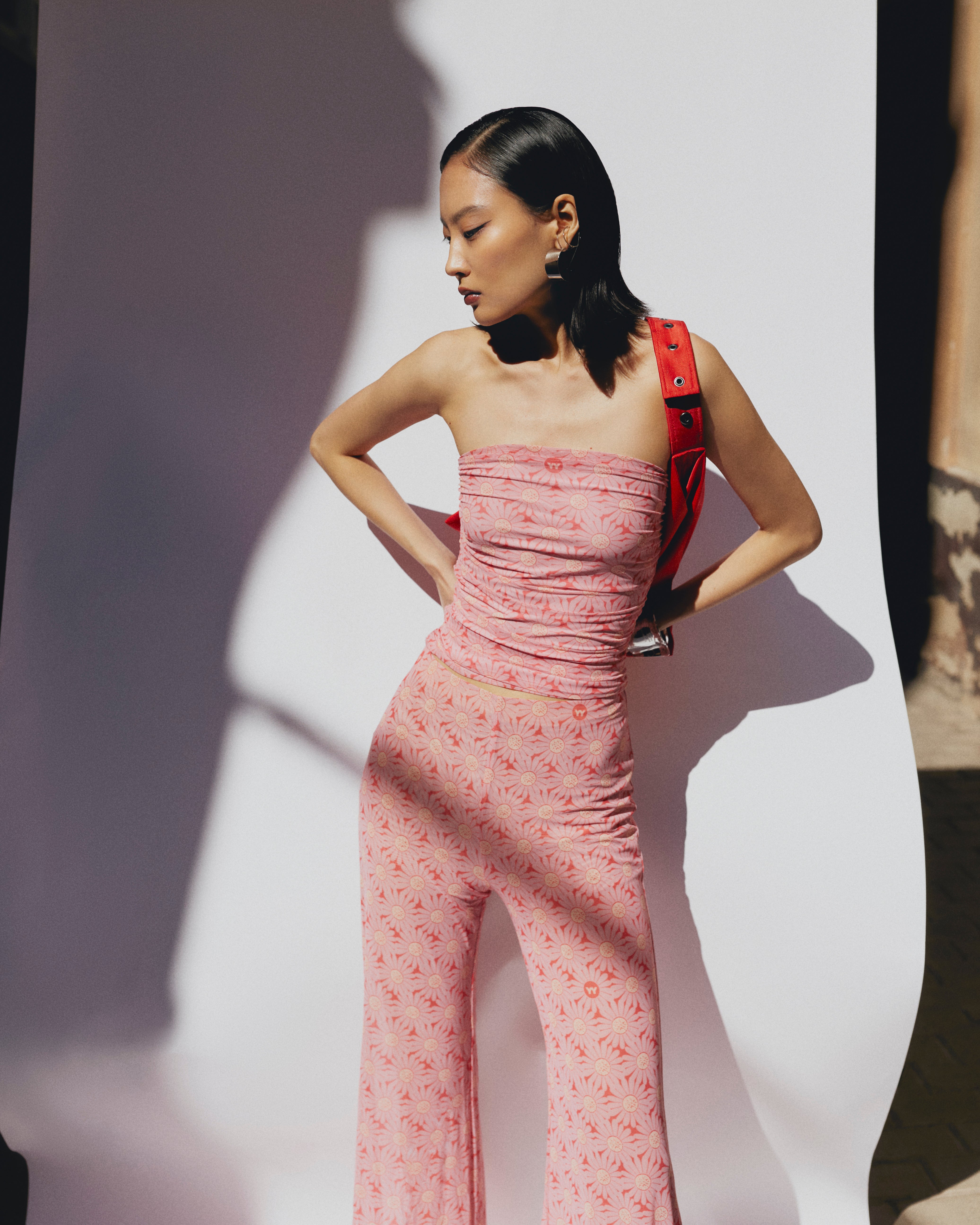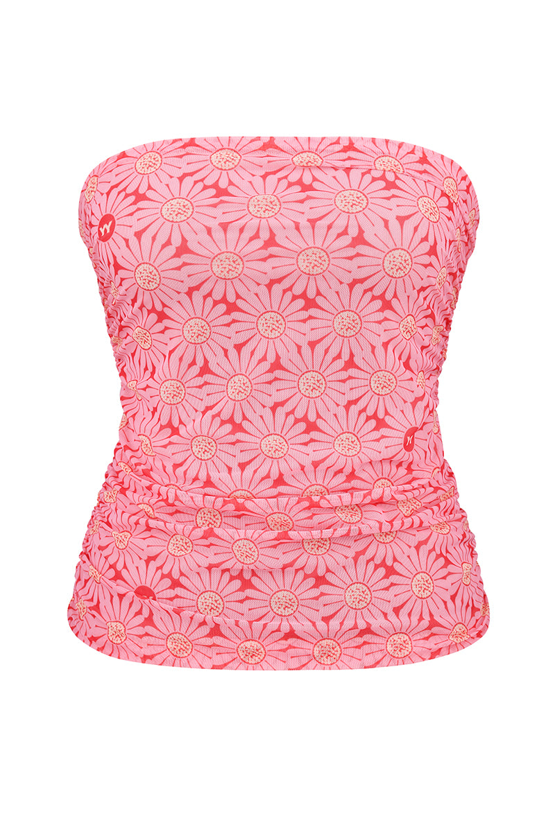 Mesh bandeau top with original print. Product on a knitted lining. Easy assembly on the sides. The length is 4 cm below the waist. The product will be a universal base for any bottom. Design print. Perfect with T-shirts, hoodies, jumpers and jackets.