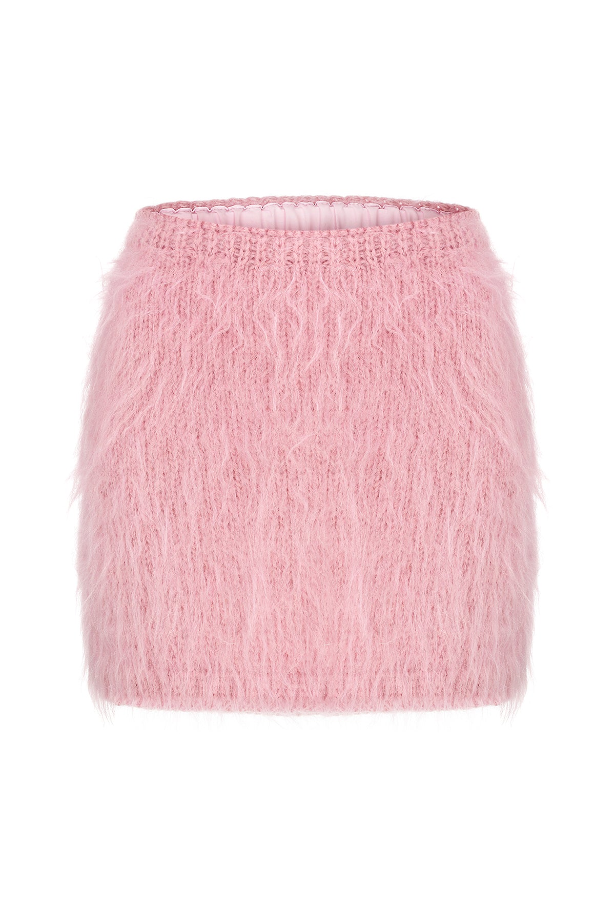 Knitted mini skirt with a long pile. Waist on the rubber band. Product on removable knitted substrate. Perfect in combination with a cardigans made of the same fabric, as well as with a shirt and jackets from the collection.