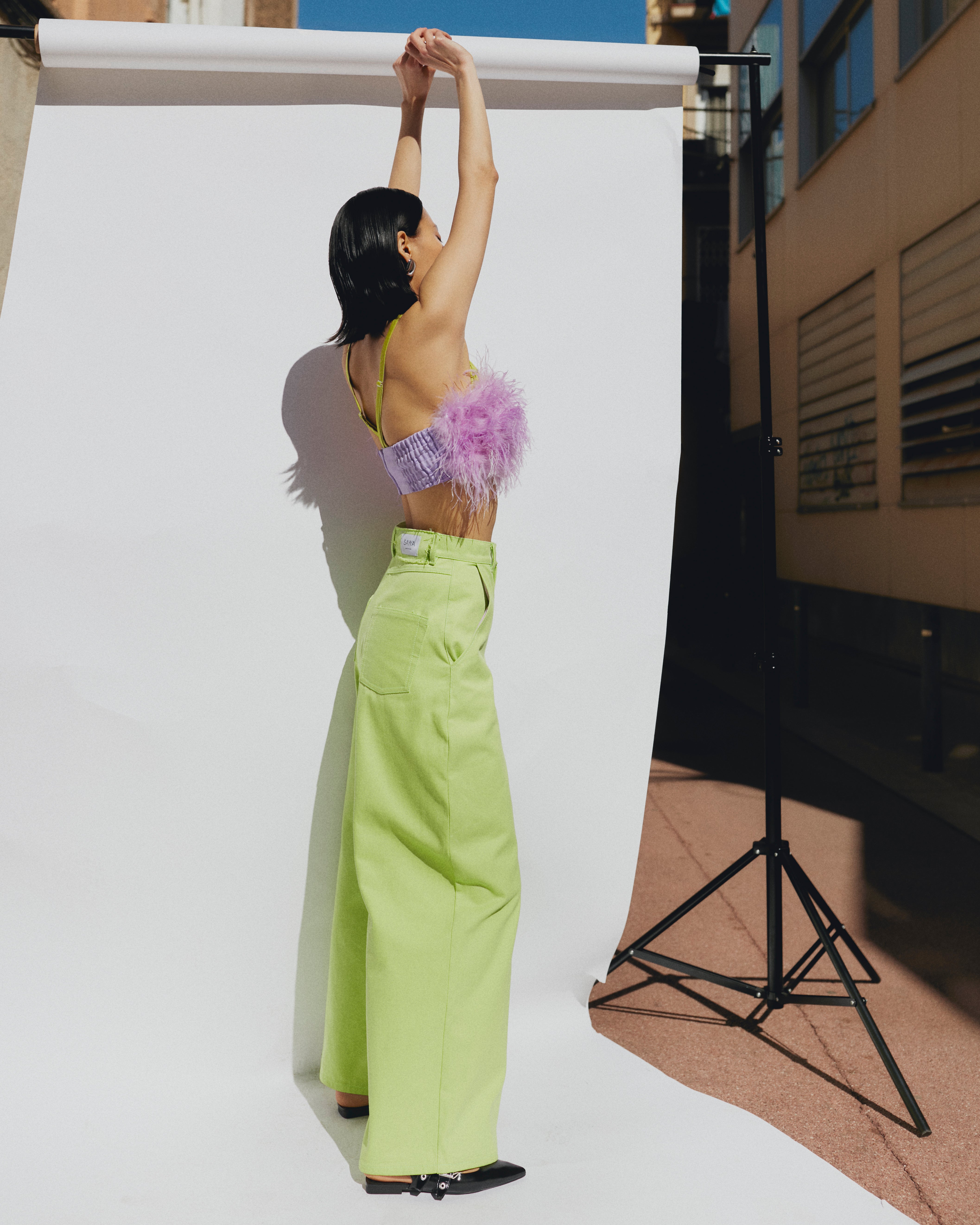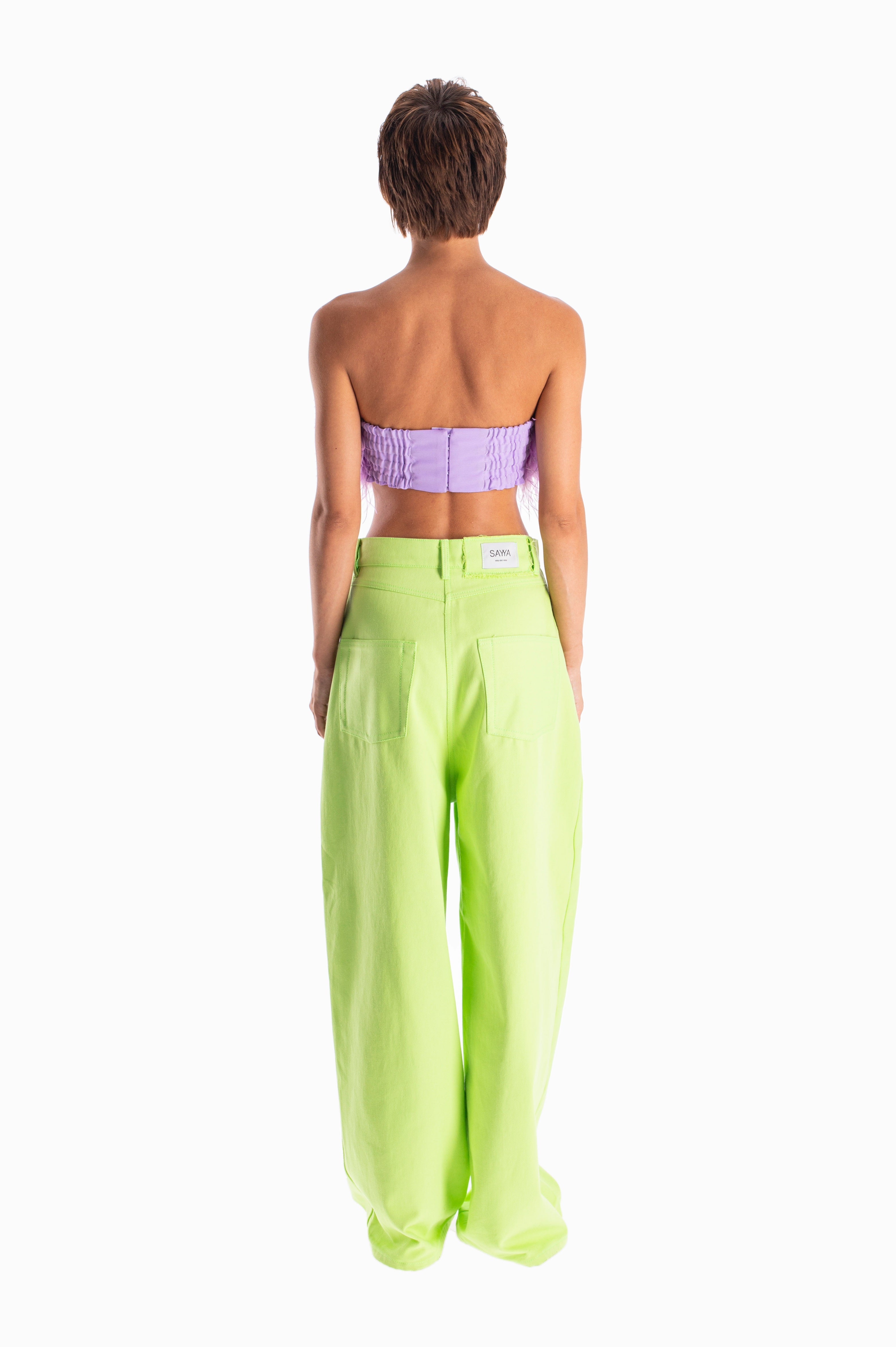 Banana jeans. Fit at the waist. Functional pockets on the front and back. The seat position is low, which makes the product more relaxed and comfortable.