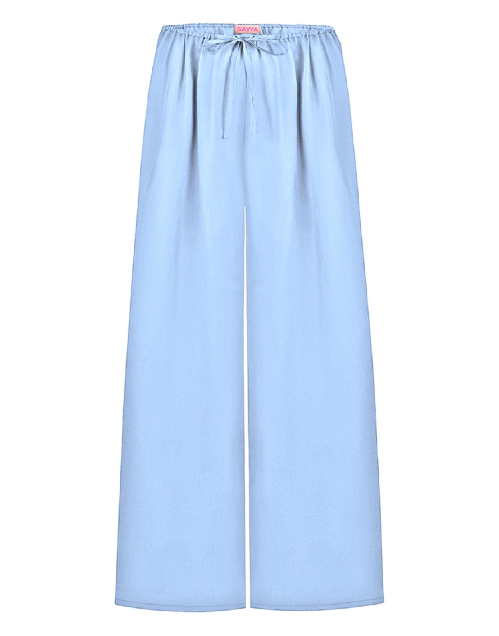 Широкі штани з шовку. Фіксуються на талії за допомогою прихованої резинки і ремінця з тієї ж тканини. Це дозволяє регулювати підйом і посадку виробу. Ідеально підходять, як базова одиниця, так і як яскравий акцент будь-якого образу. Можна поєднувати з сорочками, кардиганами та футболками з колекції.