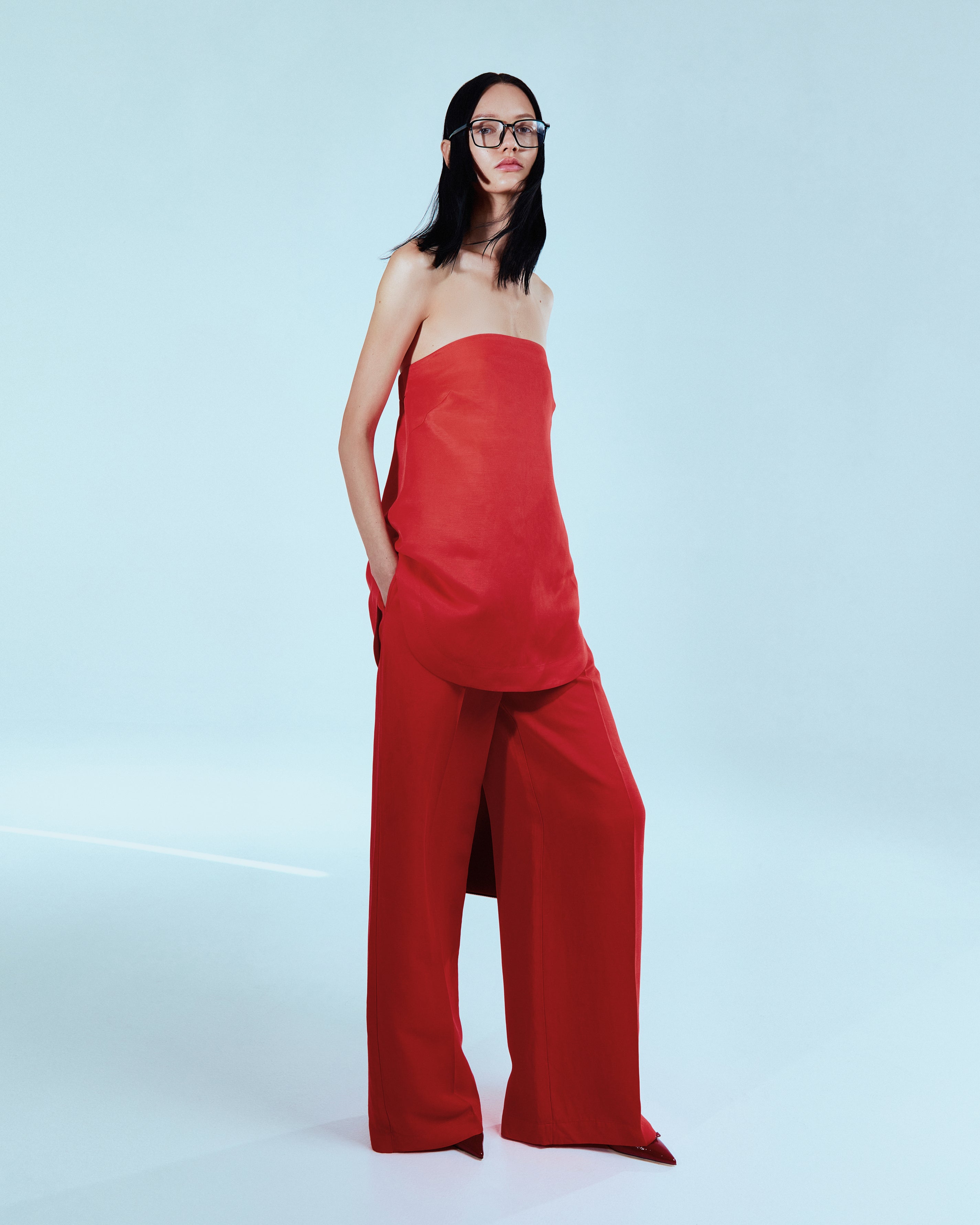 Брюки палаццо в чоловічому стилі з середньою посадкою. Витіснені стрілки. Бічні кишені. Тканина - мікс з льону та бавовни, створює невимушений образ. Рельєфи додатково підкреслені лінією кольору виробу. Виріб застібається на металеву кнопку.