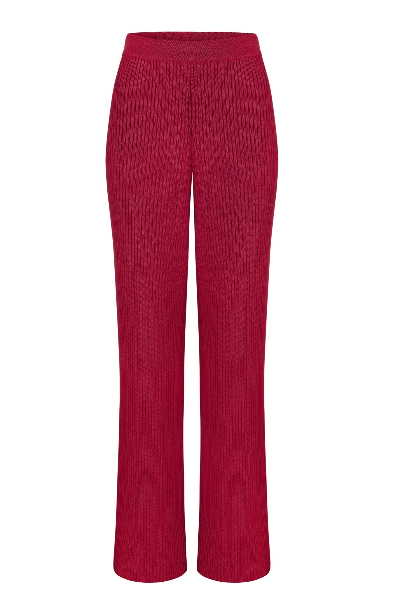 Knitted trousers made of natural wool. The flowing silhouette visually stretches the leg line. At the waist, it is fixed with an elastic band. Perfect in combination with a turtleneck made of the same material, as well as with jackets from the collection.