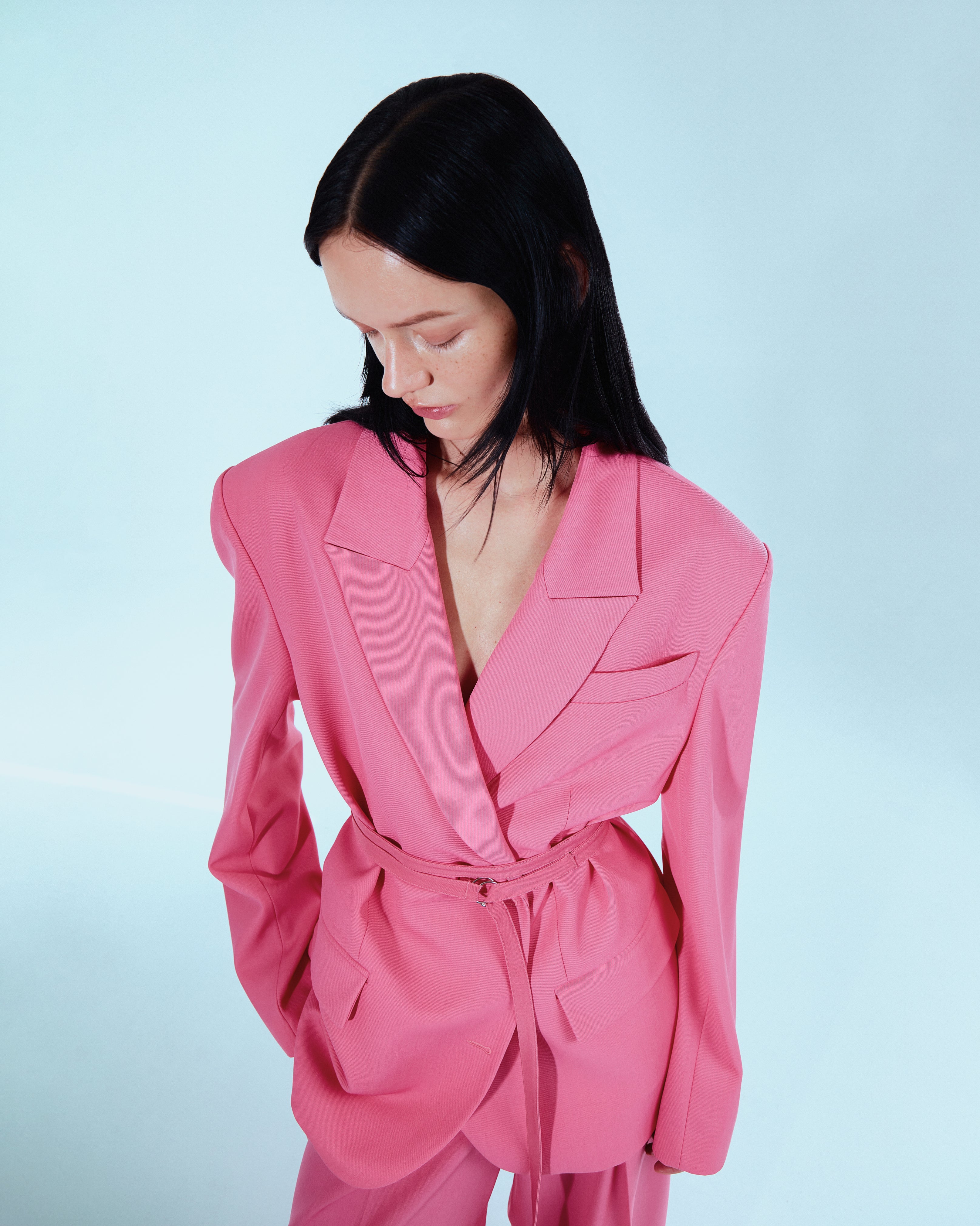 Оверсайз жакет з легкої костюмної вовни, крій "з чоловічого плеча". Виріб на підкладці. Радимо носити його з поясом, щоб створити більш жіночний силует. Жакет може бути самостійною одиницею гардероба, або комбінувати з брюками як тотал лук SAYYA