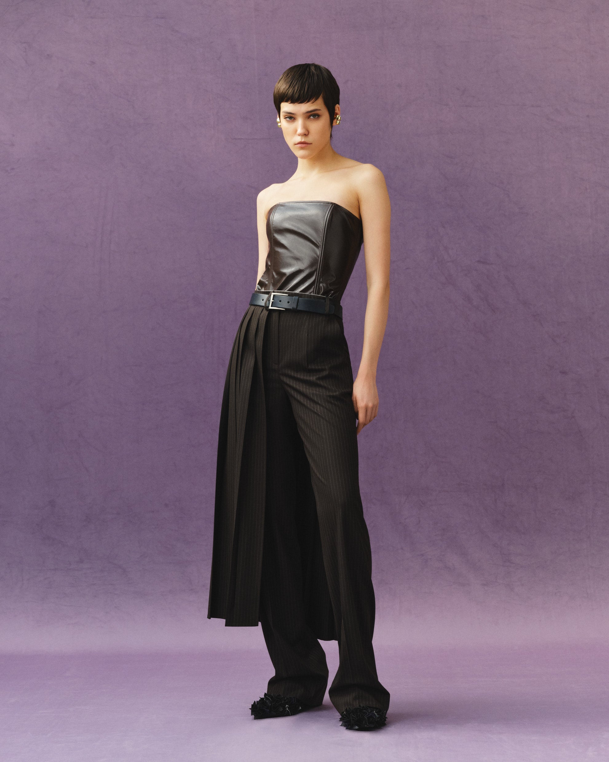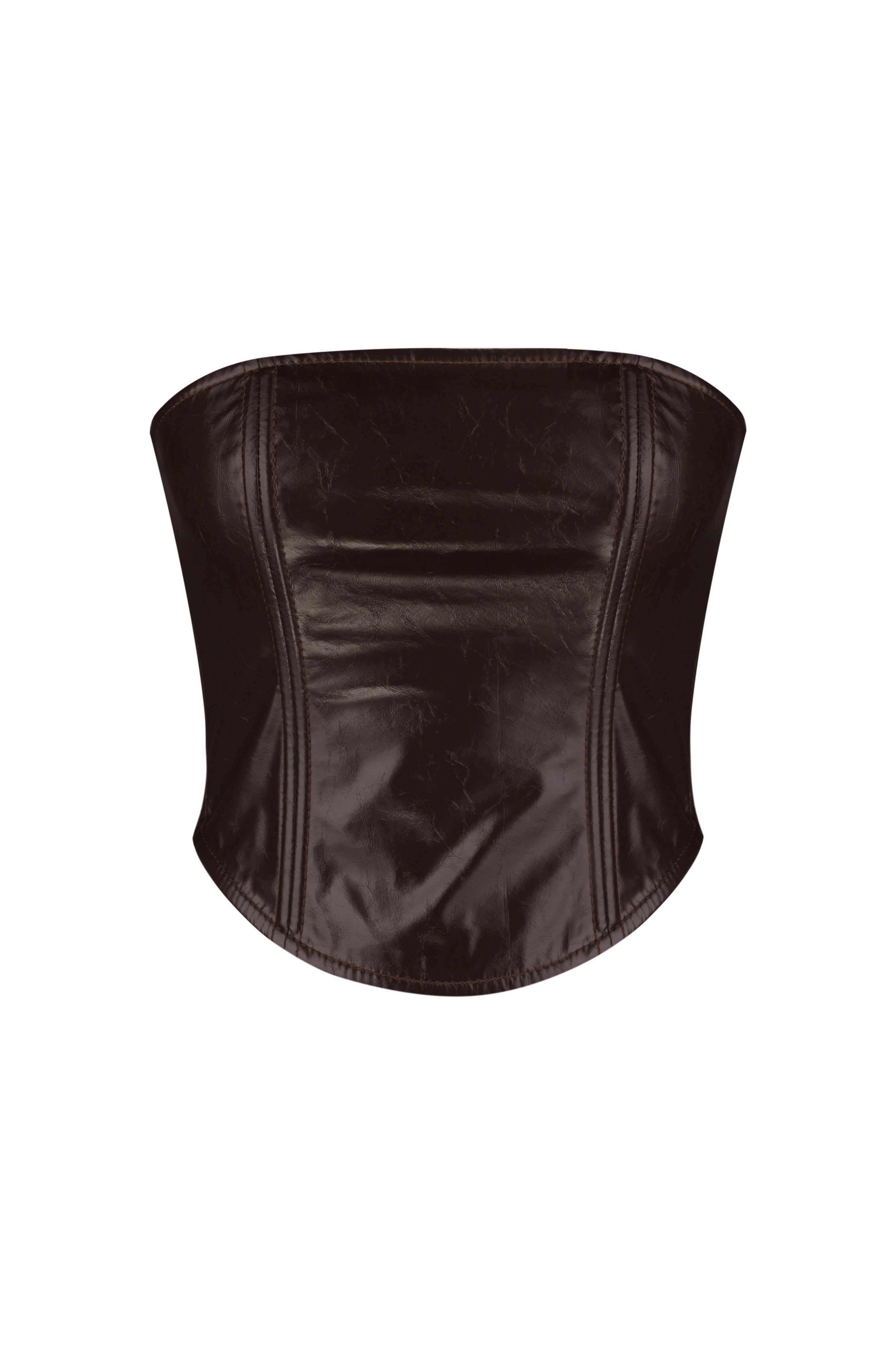 Класичний корсет виготовлений з еко шкіри лакової текстури. Застібка ззаду на металеву блискавку. Чудово поєднується з міні спідницею та брюками колекції