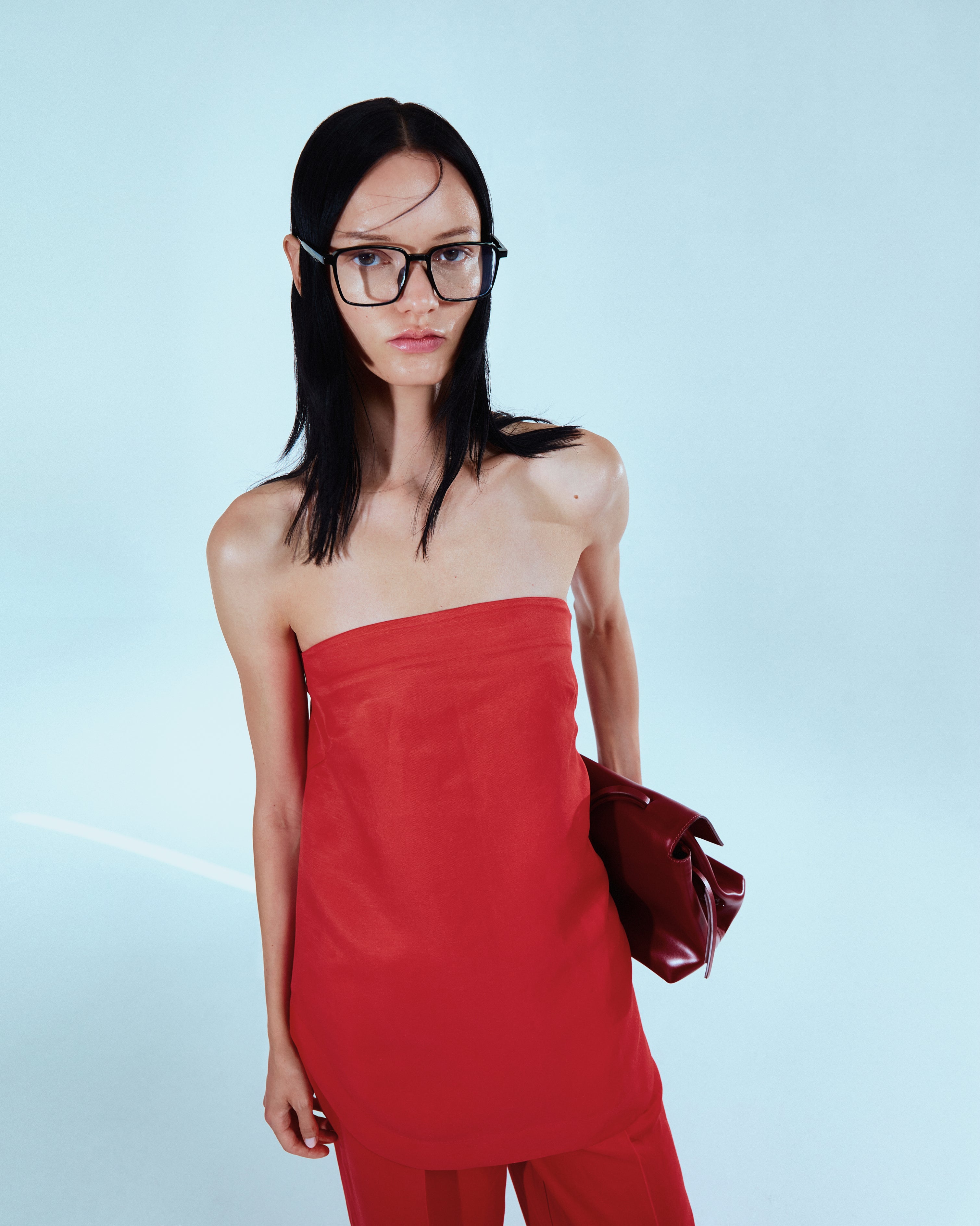 Топ бандо з вирізами з боків. Еластична спинка. Виготовлений із суміші натурального льону та бавовни.